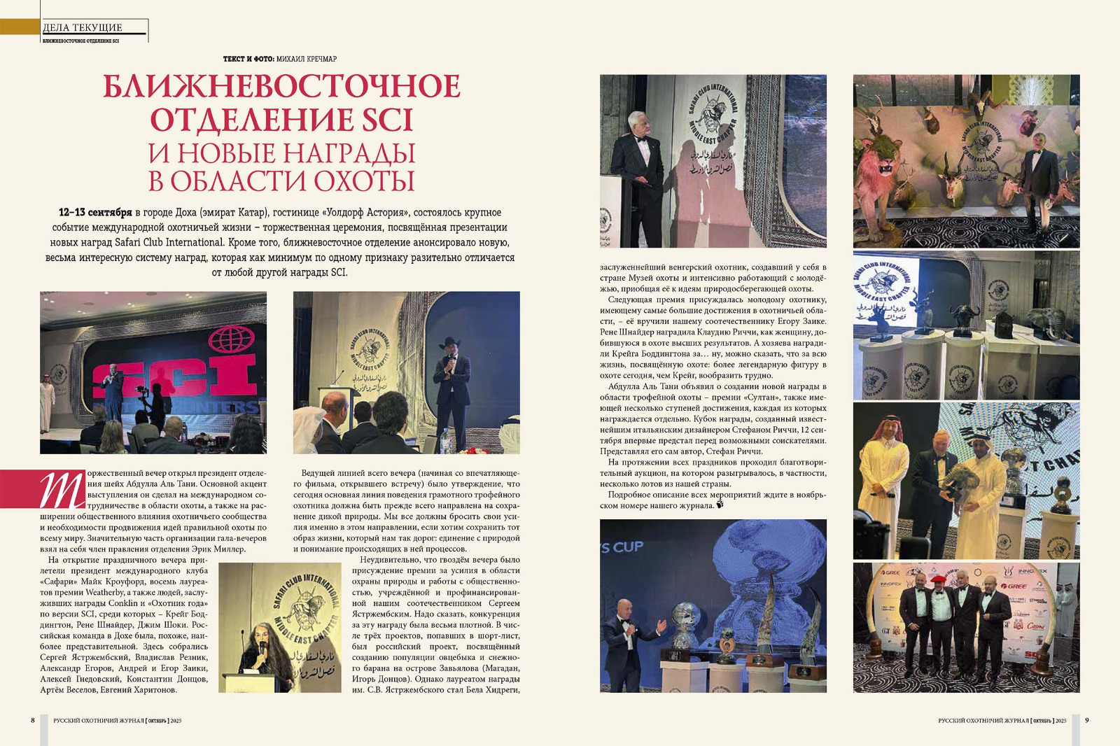 12–13 сентября в городе Доха (эмират Катар), гостинице «Уолдорф Астория», состоялось крупное событие международной охотничьей жизни – торжественная церемония, посвящённая презентации новых наград Safari Club International. В их числе – награда охотнику за природоохранную деятельность, учреждённую нашим земляком, Сергеем Ястржембским. Кроме того, ближневосточное отделение анонсировало новую, весьма интересную систему наград, которая как минимум по одному признаку разительно отличается от любой другой награды SCI.