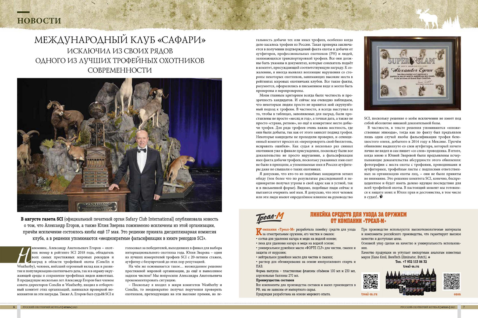 «Международный клуб Сафари» исключил из своих рядов одного из лучших трофейных охотников современности – речь идёт о нашем постоянном авторе Александре Егорове. Сам Александр Егоров обсуждает на наших страницах причины этого решения.
