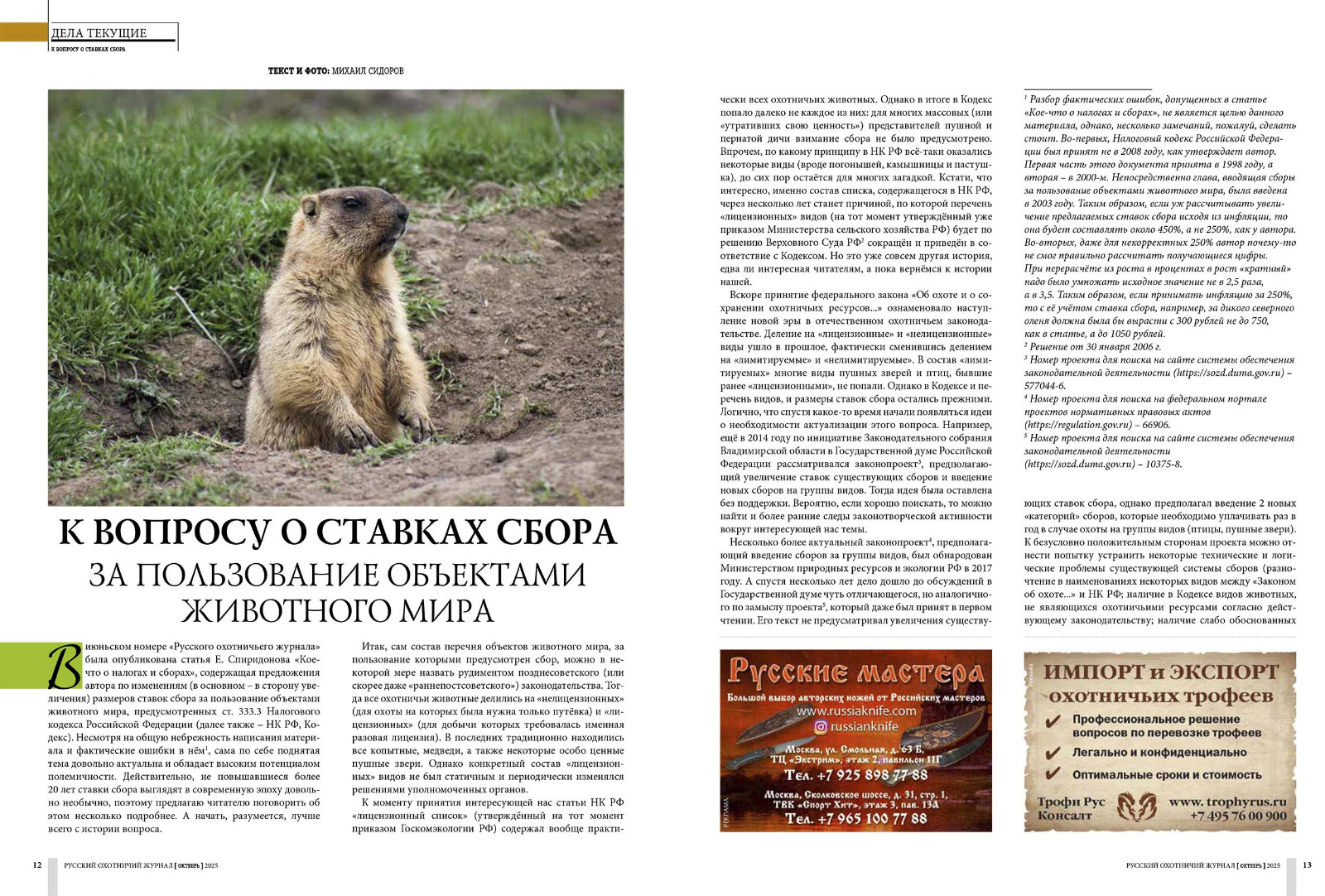 «К вопросу о ставках сбора за пользование объектами животного мира» возвращается наш автор Михаил Сидоров.