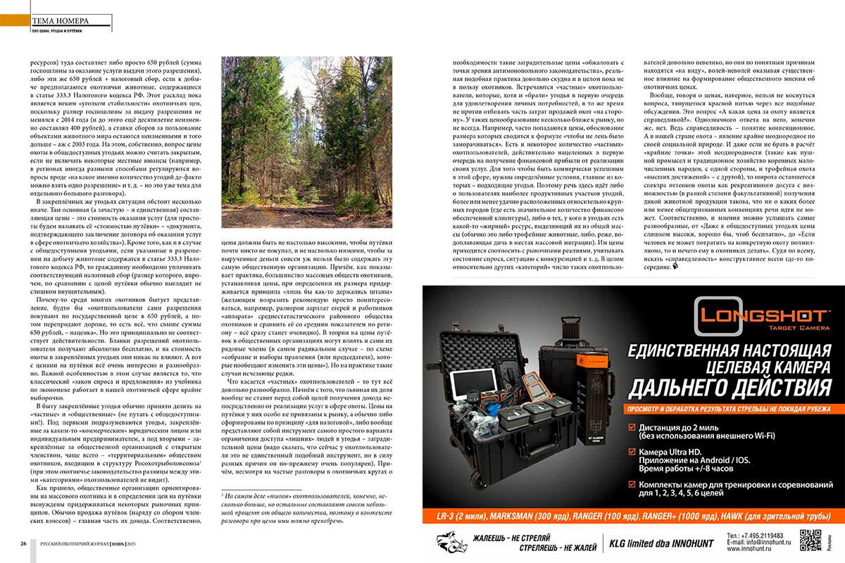 И всё, что я могу в напутствие сказать вслед за одним из авторов, перед тем, как вы заглянете в этот номер – нам всем нужно срочно разбогатеть. Причём внушительно, если мы хотим заниматься охотой и далее.